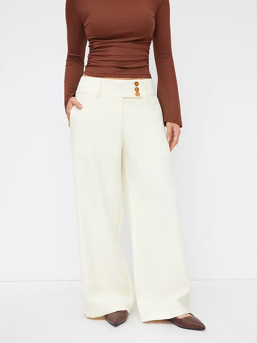 Sale!Wrinkle-free Fabric Low Rise Button Straight Leg Trousers
