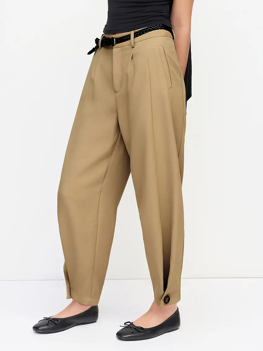 Sale!Wrinkle-free Fabric Mid Rise Barrel-leg Trousers With Belt