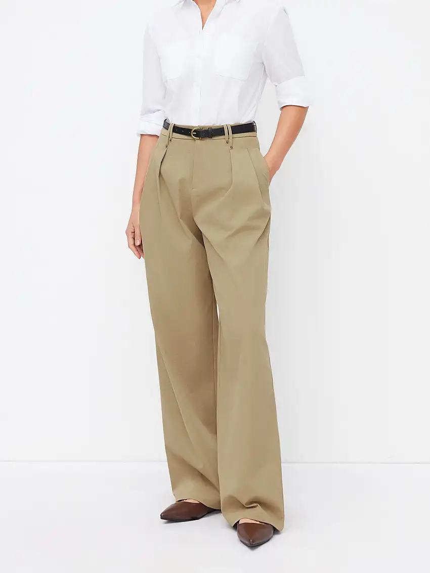Sale!Wrinkle-free Fabric Mid Rise Pleated Straight Leg Trousers With Belt