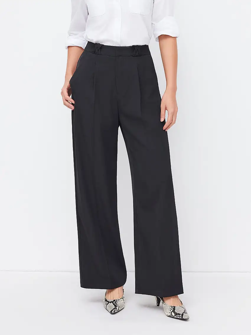 Sale!Wrinkle-free Fabric Mid Rise Pleated Straight Leg Trousers