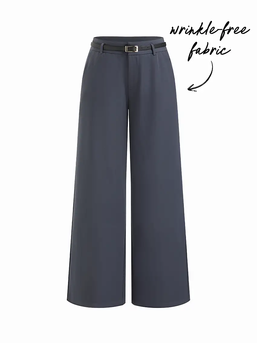 Sale!Wrinkle-free Fabric Low Rise Straight Leg Trousers With Belt