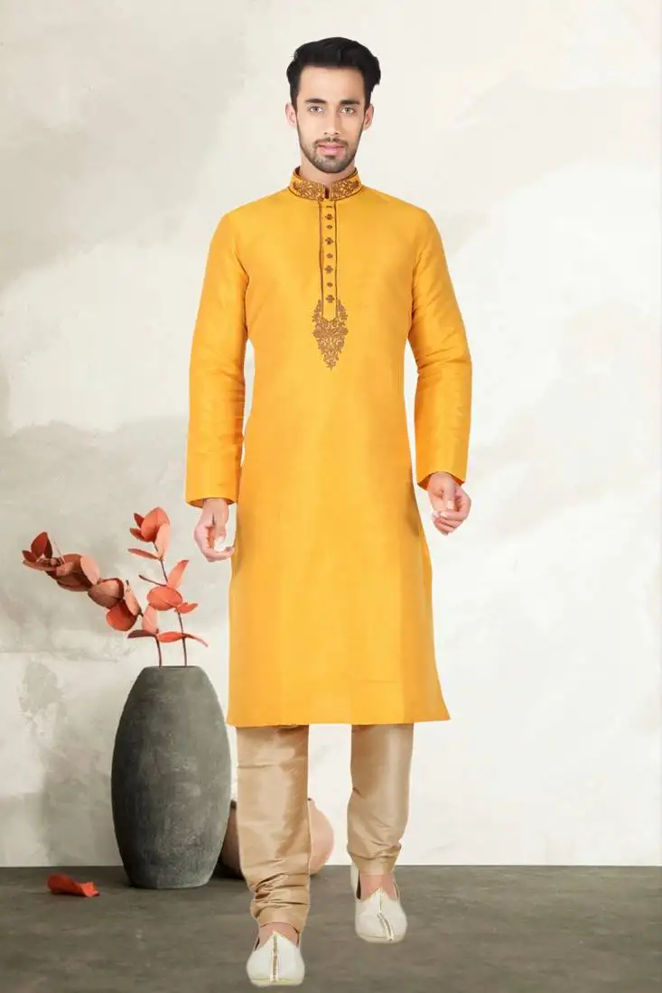 • Yellow bangalore silk kurta pajama