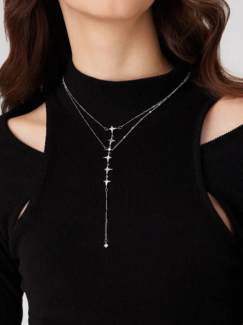 Y-SHAPED STAR ZIRCON LAYERED NECKLACE