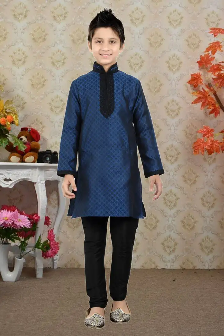 Sale!Navy blue brocket embroidery kids boys kurta pyjama