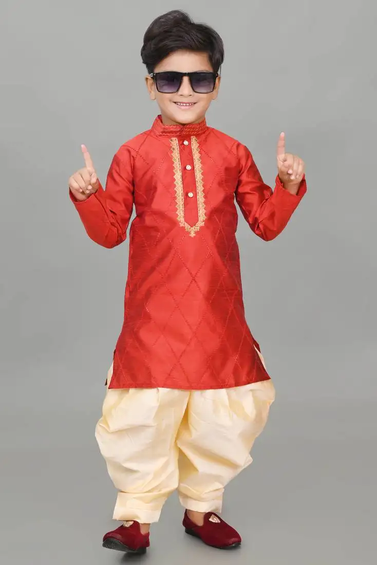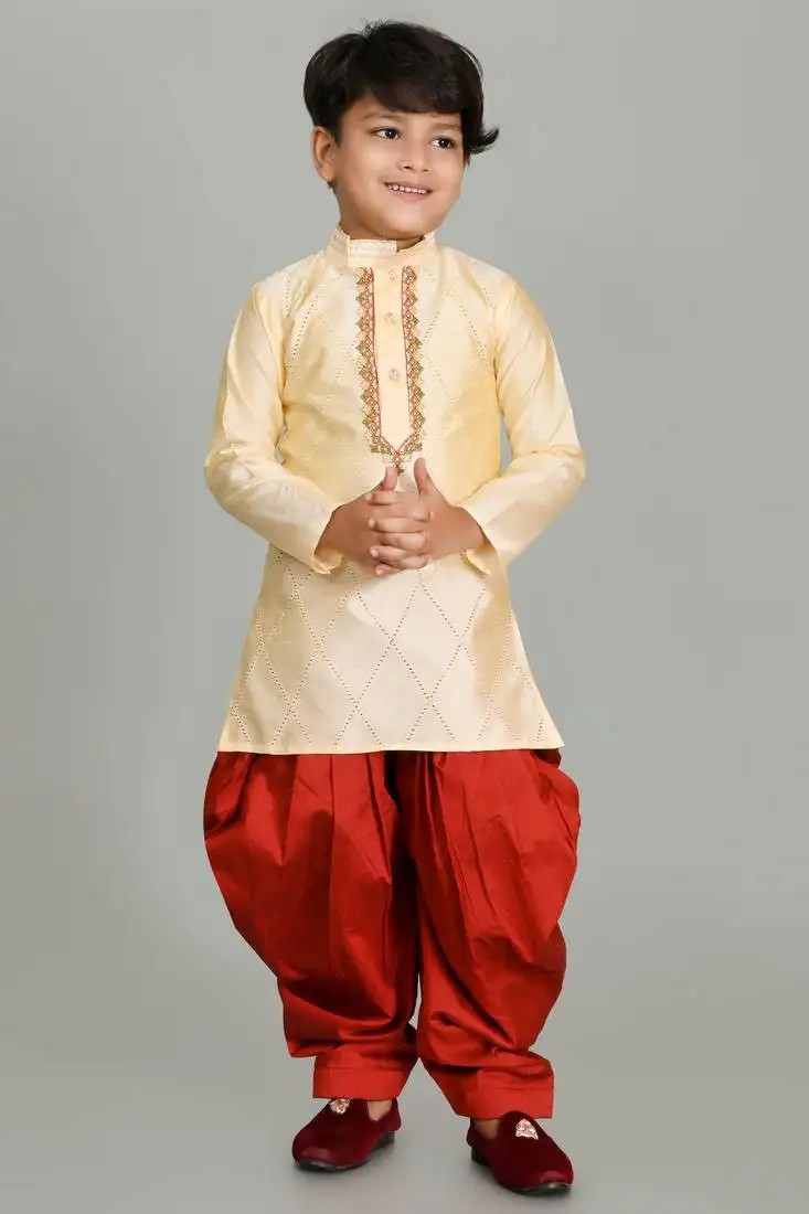 Sale!Nfc creation embroidery and sequins work dupion silk kurta and cotton pajama set for boys
