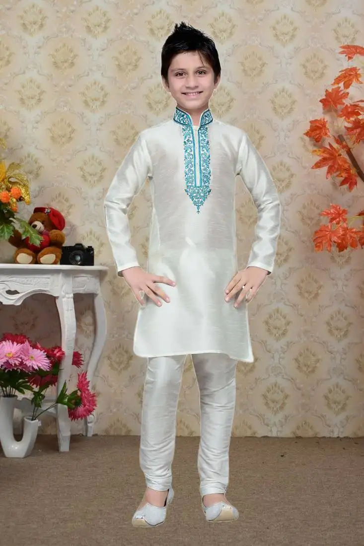 Sale!White art silk kids kurta pyjama for boys