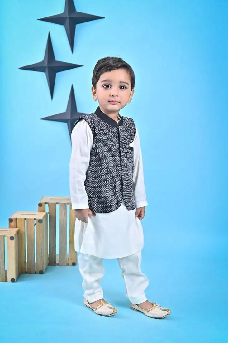 Sale!White kurta chudidar black nehru jacket