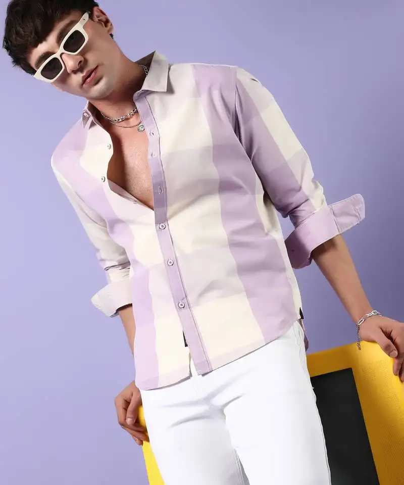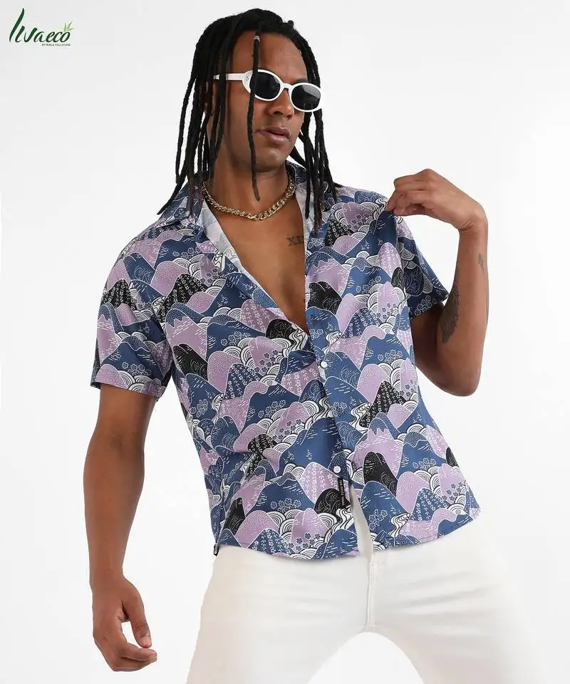 Sale!Campus sutra men’s ecoliva blue & lavender contrast landscape shirt