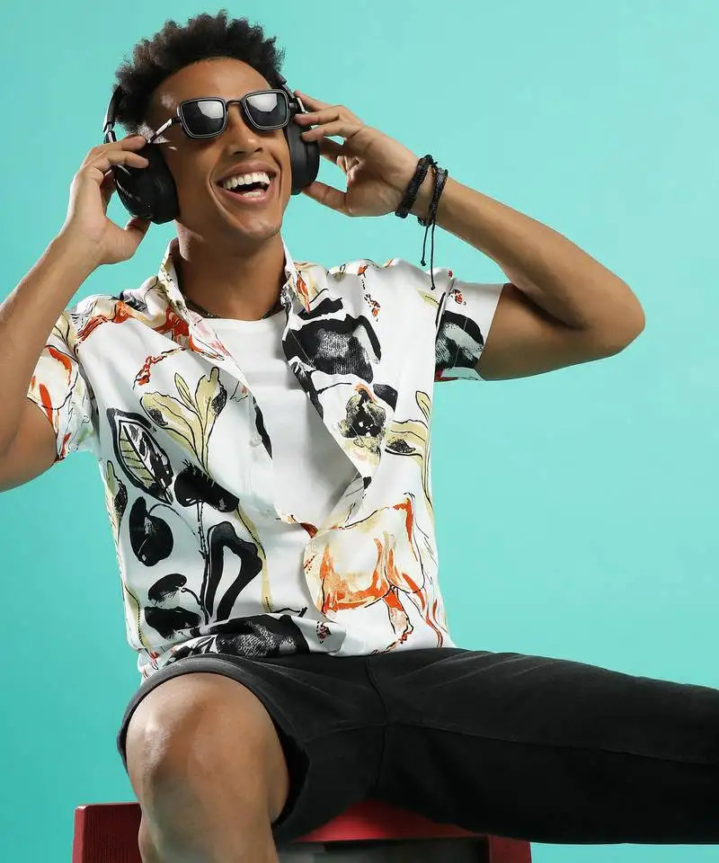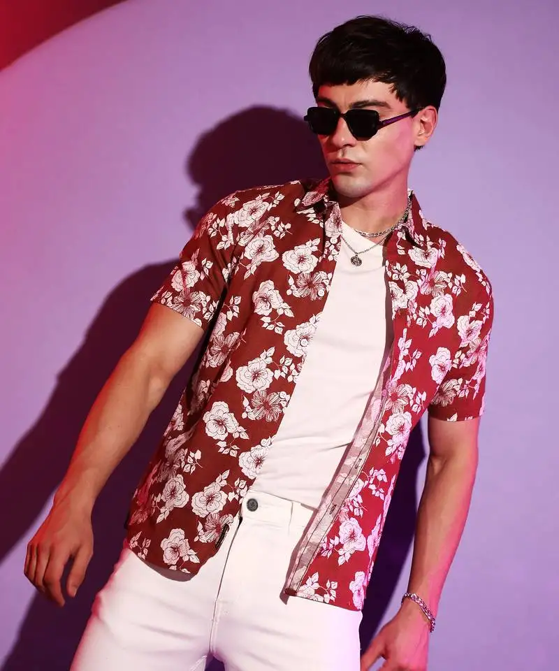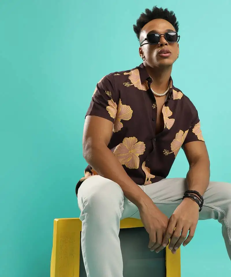 Sale!Campus sutra men’s brown hibiscus print shirt