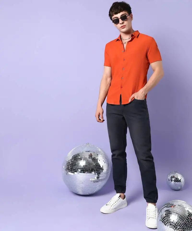 Sale!Campus sutra men’s burnt orange textured regular fit casual shirt