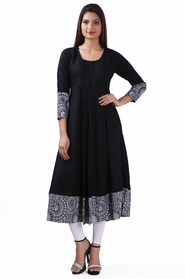 Sale!Black plain viscose stitched rayon ethnic-kurtis