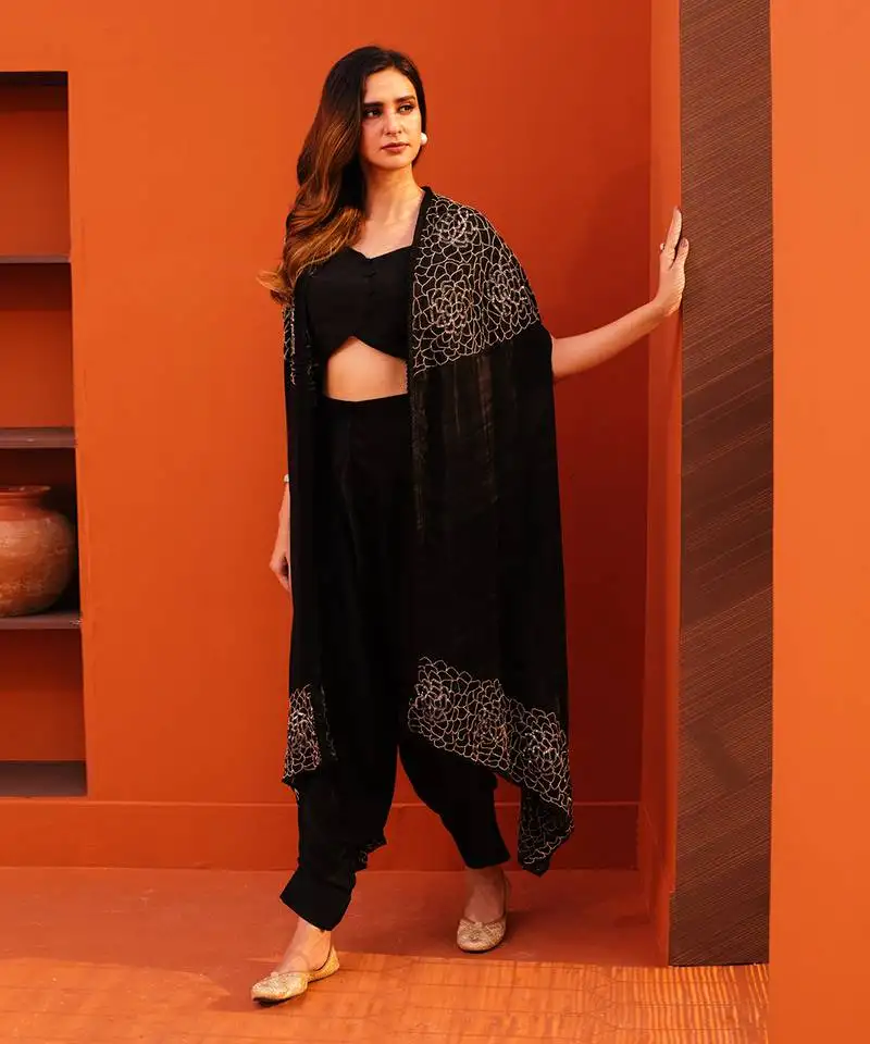Sale!Black color woven design silk blend styles kurta trouser with dupatta
