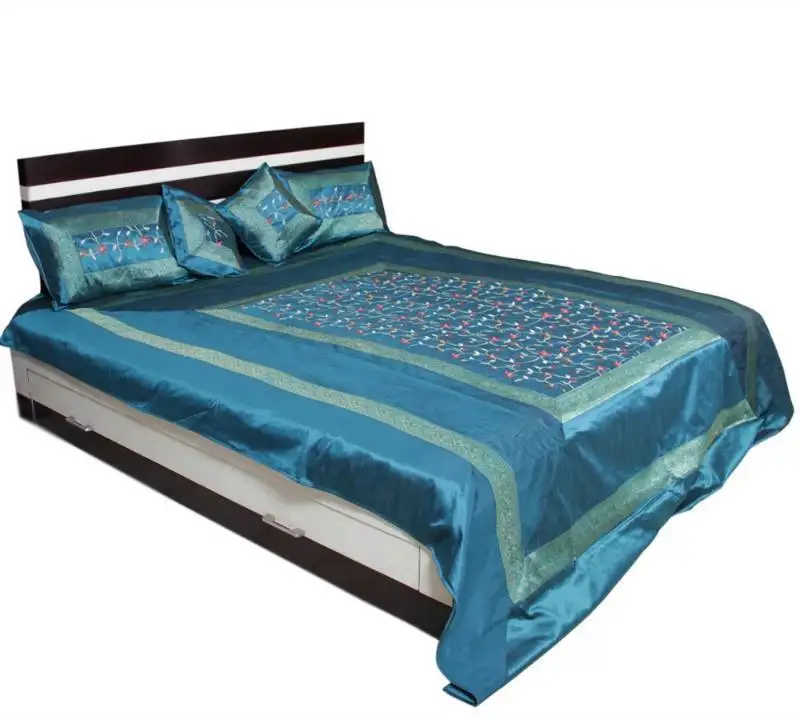 Sale!Blue polysilk bed cover