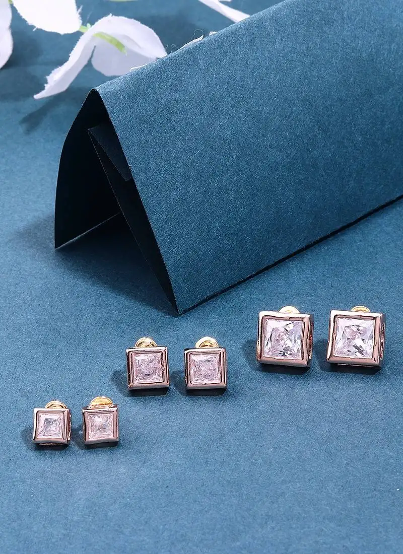 Sale!3 sets of square earrings in american diamond