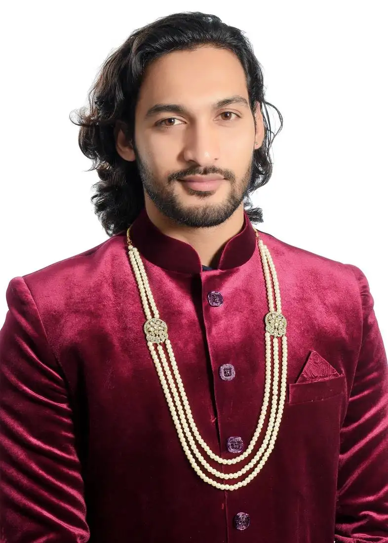 Sale!3 line gold finish dulha mala pearl with stone for men