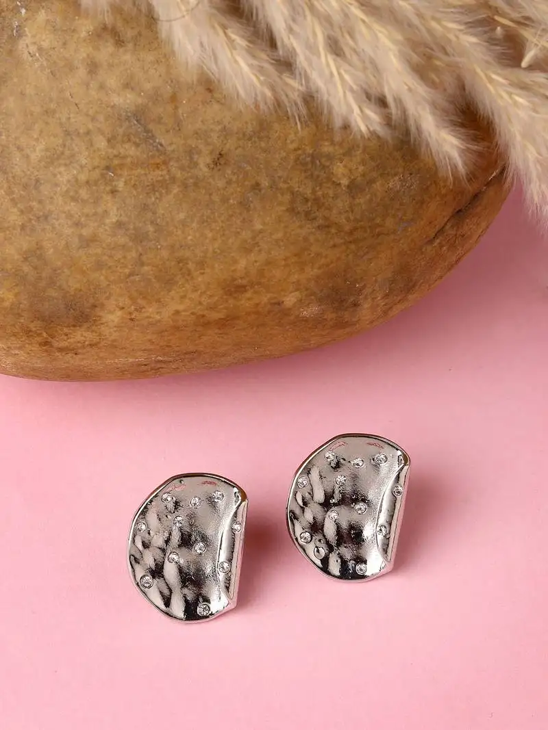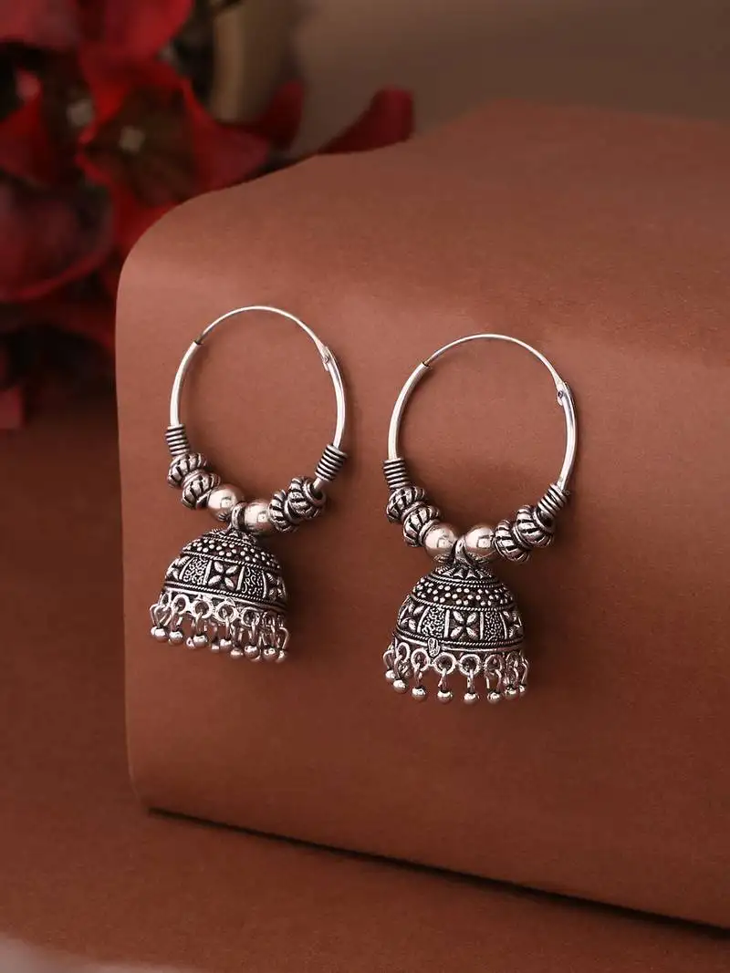 Sale!Women silver-plated dome shaped jhumka oxidised artificial stones earrings