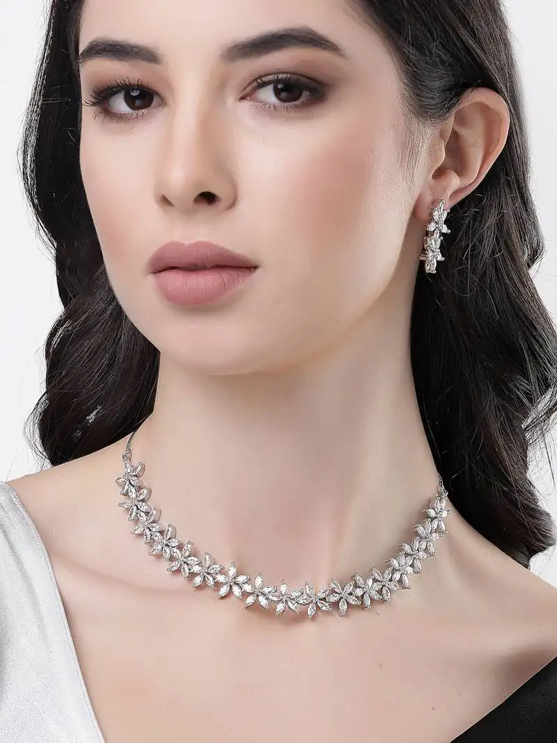 Sale!Women silver plated cz stone handcrafted jewellery set