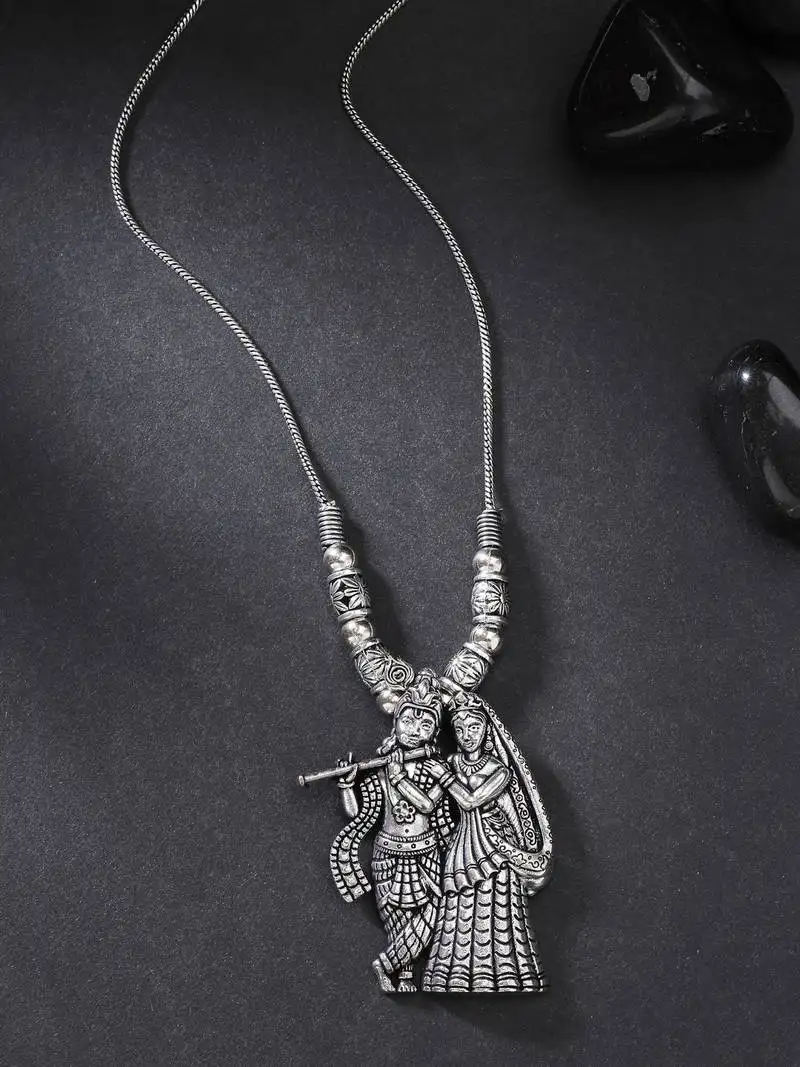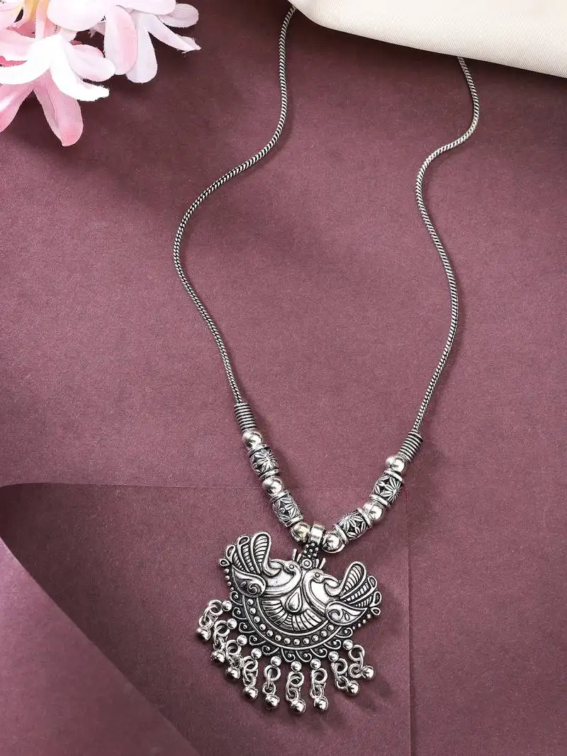 Sale!Women silver-toned german silver oxidised pendant with chain
