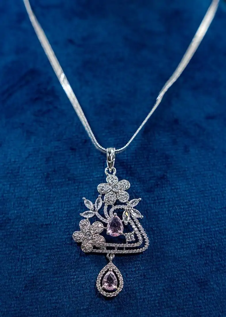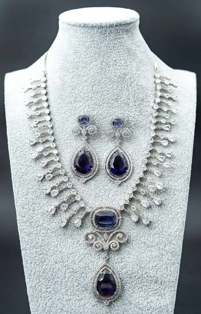 Sale!American diamond (cz) silver plated pendant set with earrings pendant blue diamond necklace