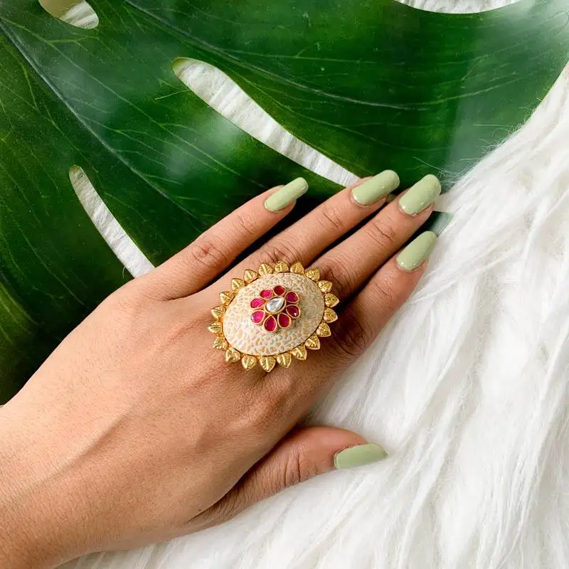 Antique ethnic traditional floral shaped design adjustable finger ring for women & girls