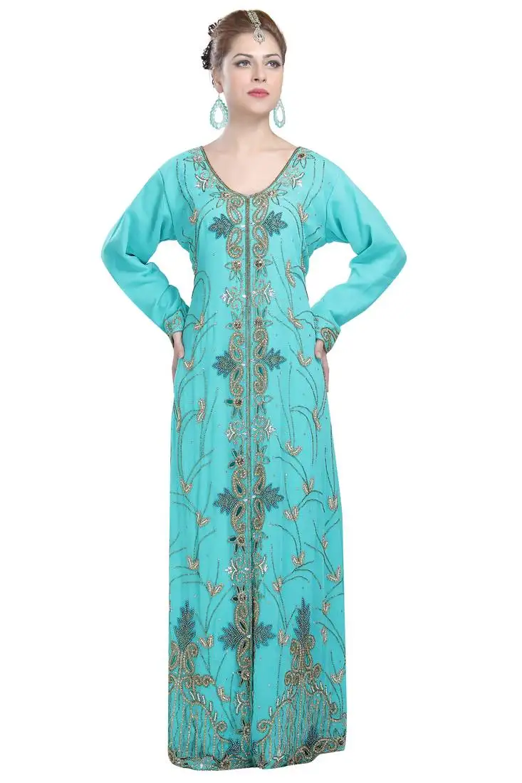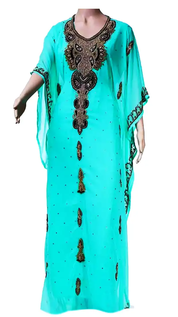 Sale!Turquoise embroidered georgette stitched islamic kaftan