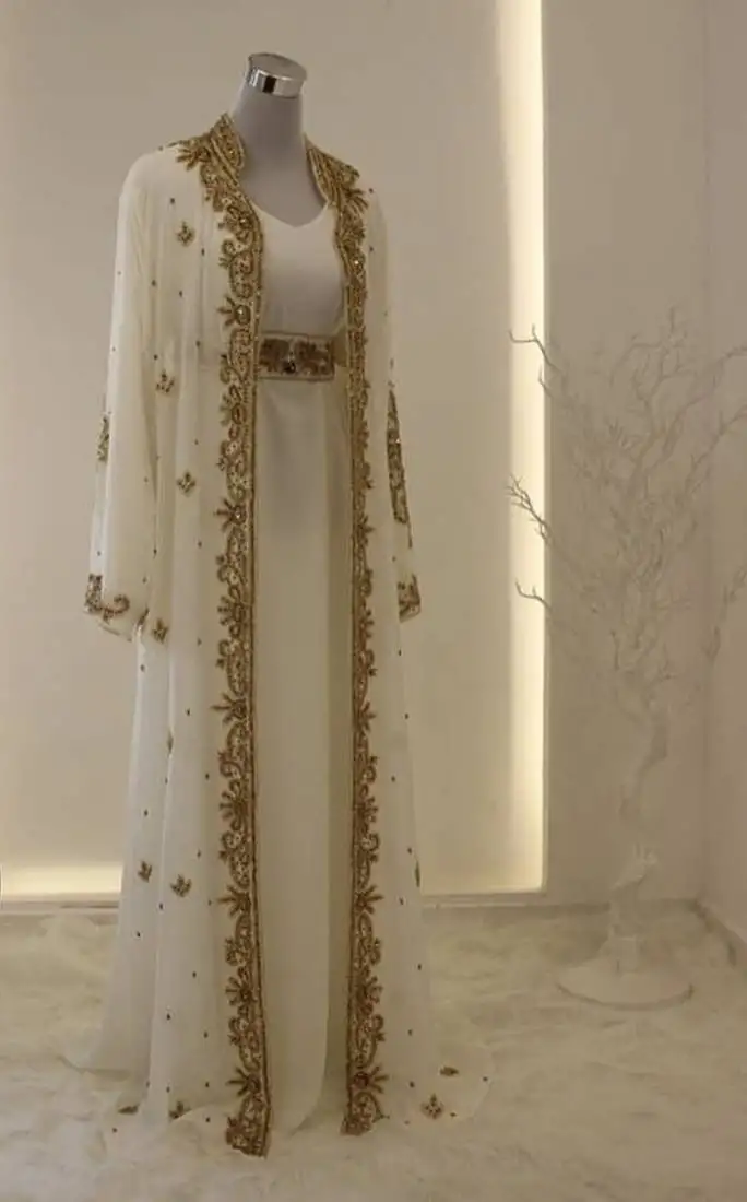 Sale!White & white handcrafted zari work stitched dress georgette kaftan party wear wedding dresses