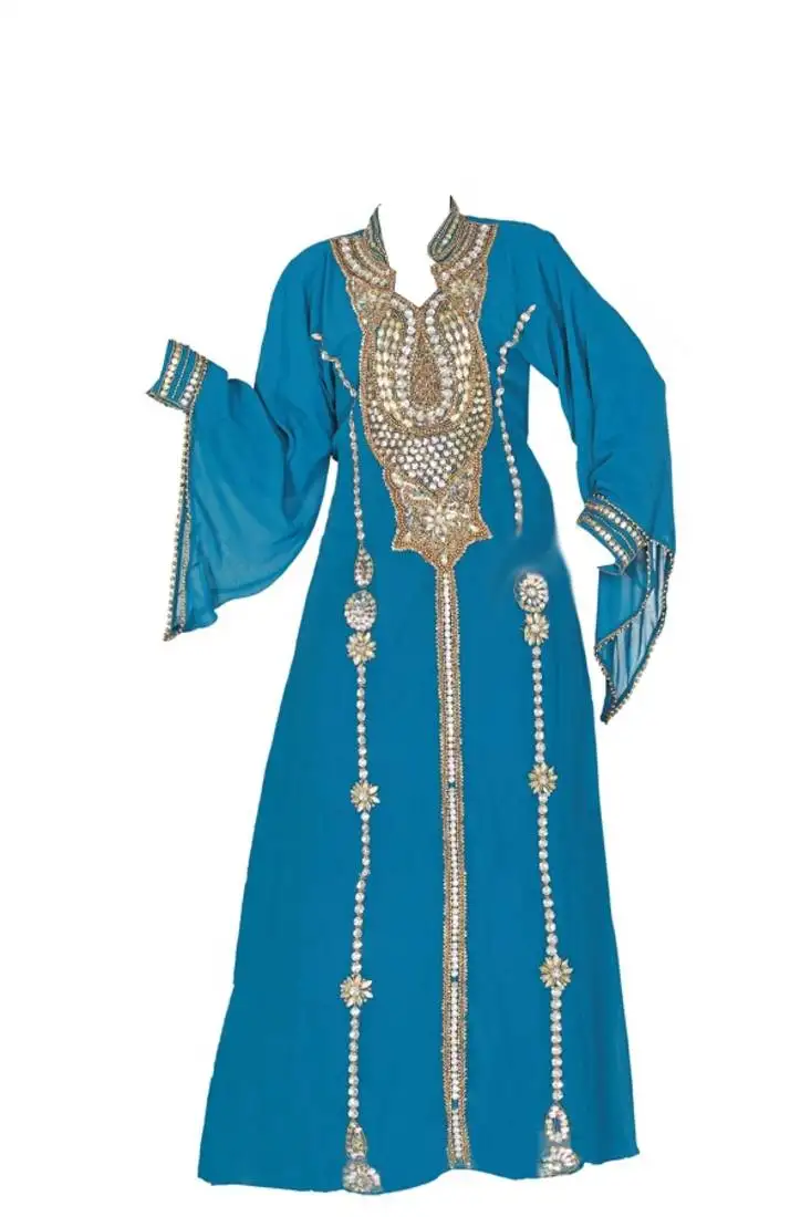 Sale!Turquoise georgette zari stone work islamic style kaftan