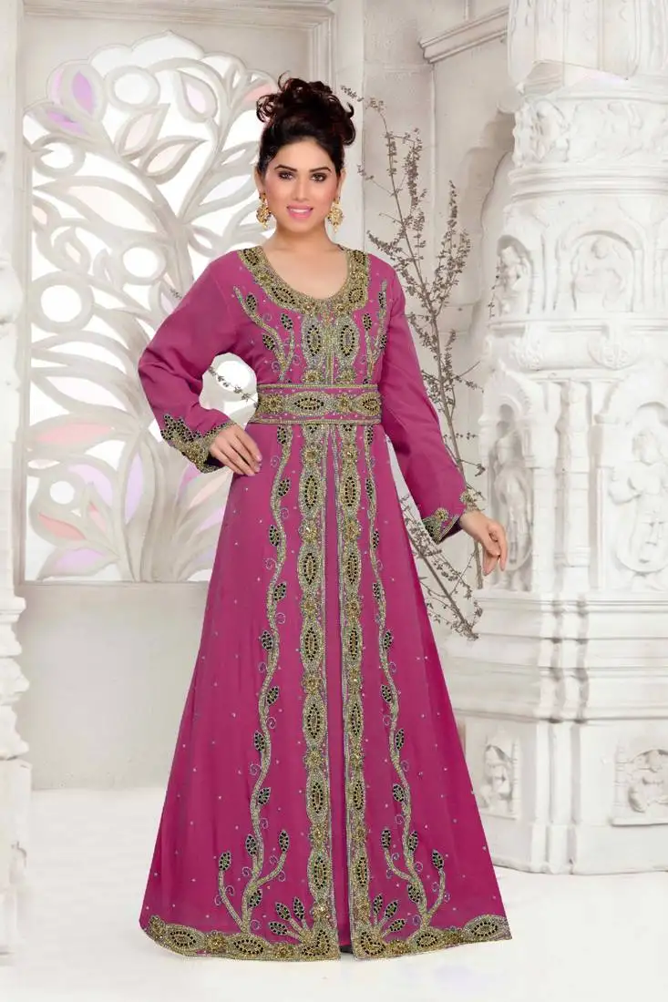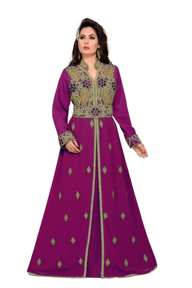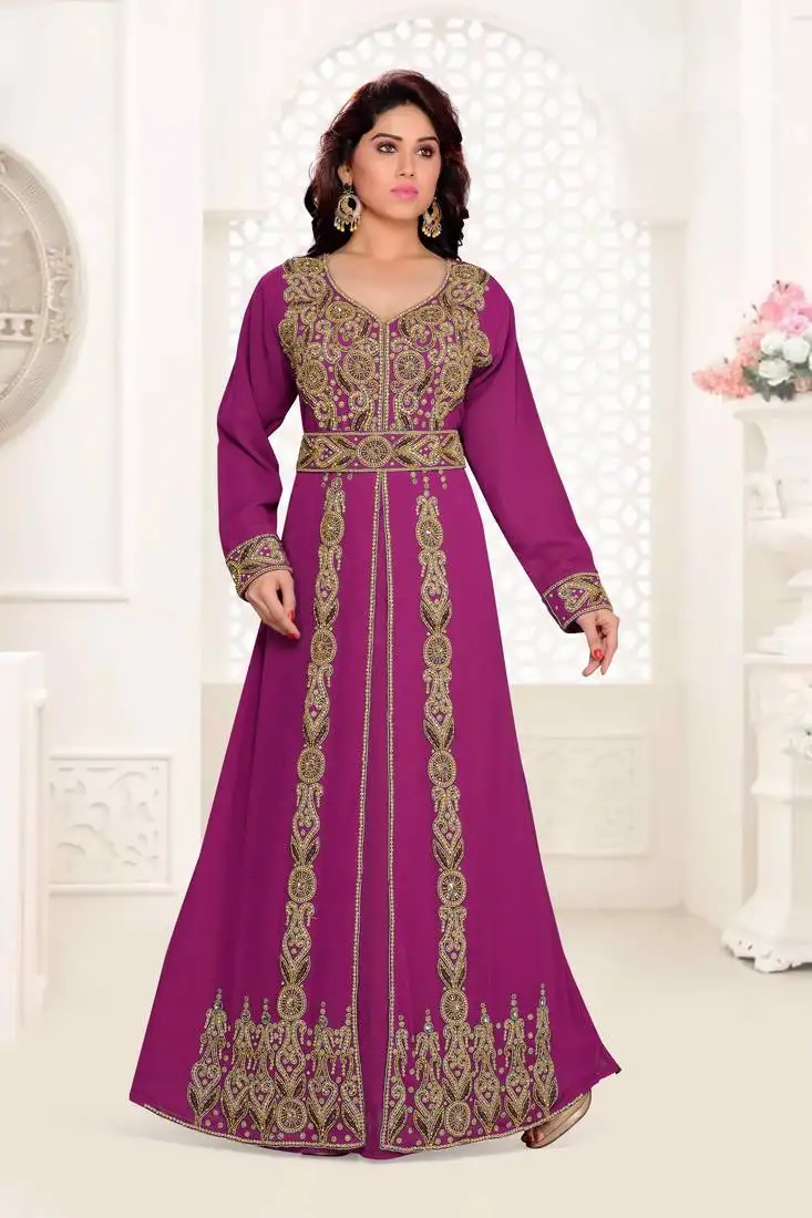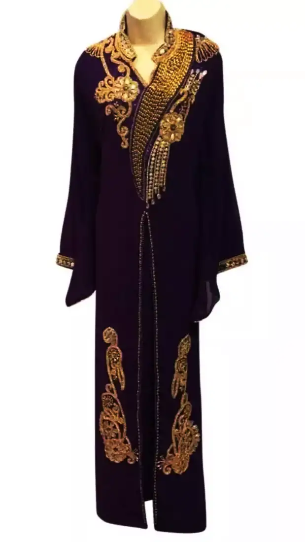 Wine color luxurious full sleeves handmade moroccan kaftan .