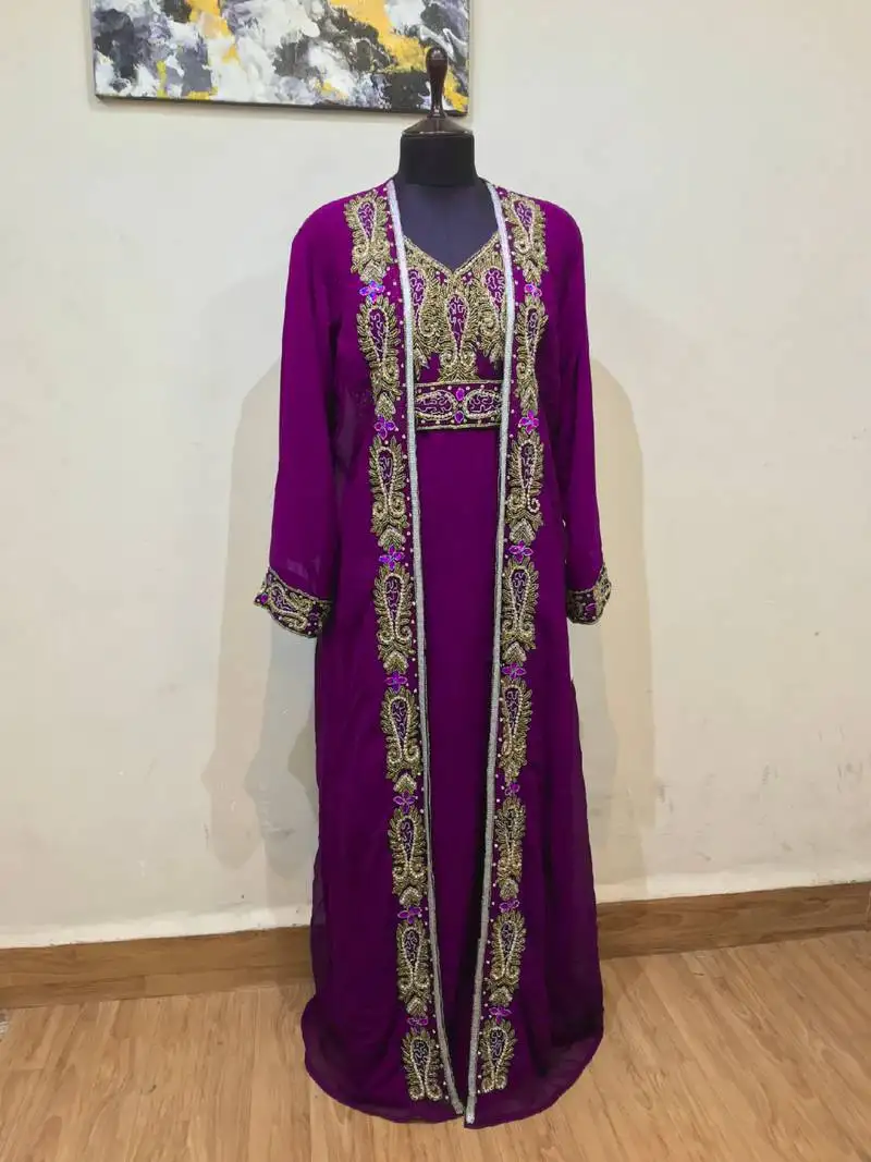 • Wine color luxurious full sleeves handmade two piece jacket style moroccan kaftan.
