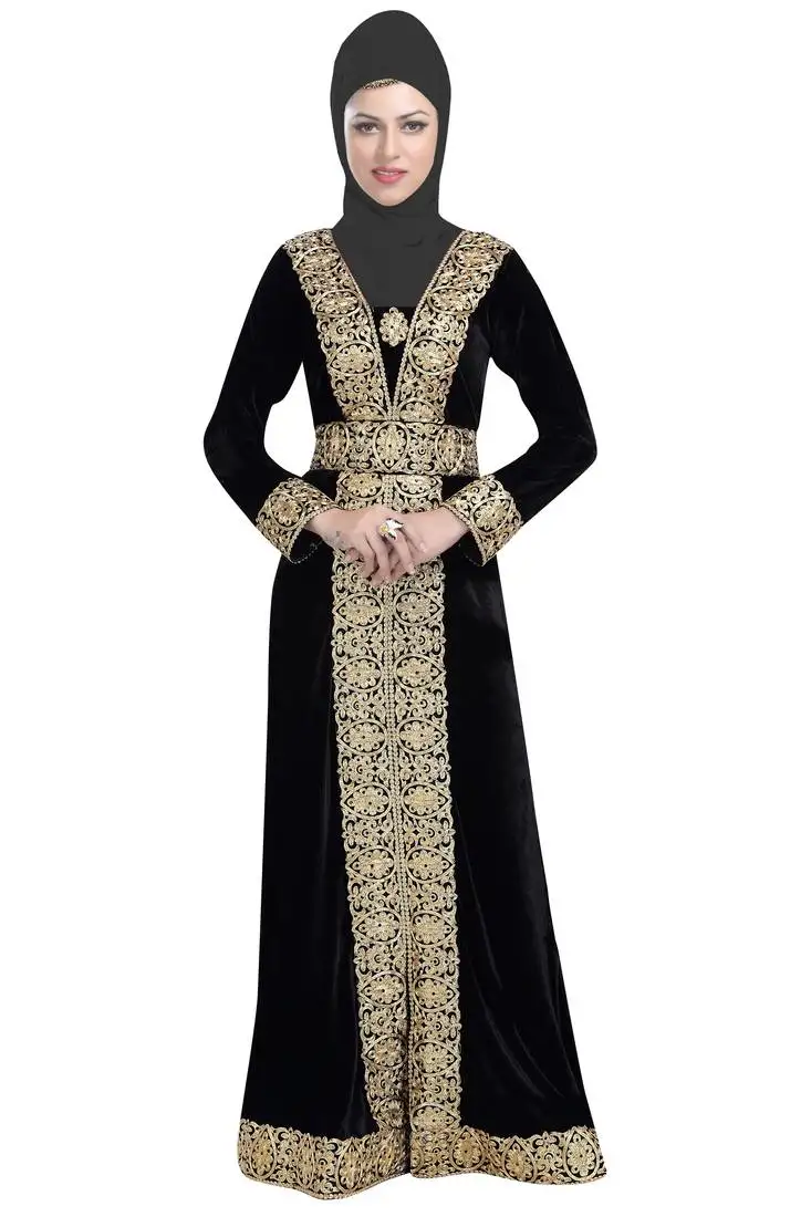 Black embroidered georgette islamic kaftans with hijab