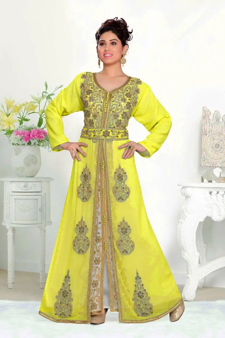 • Yellow & white color luxurious full sleeves handmade moroccan kaftan .