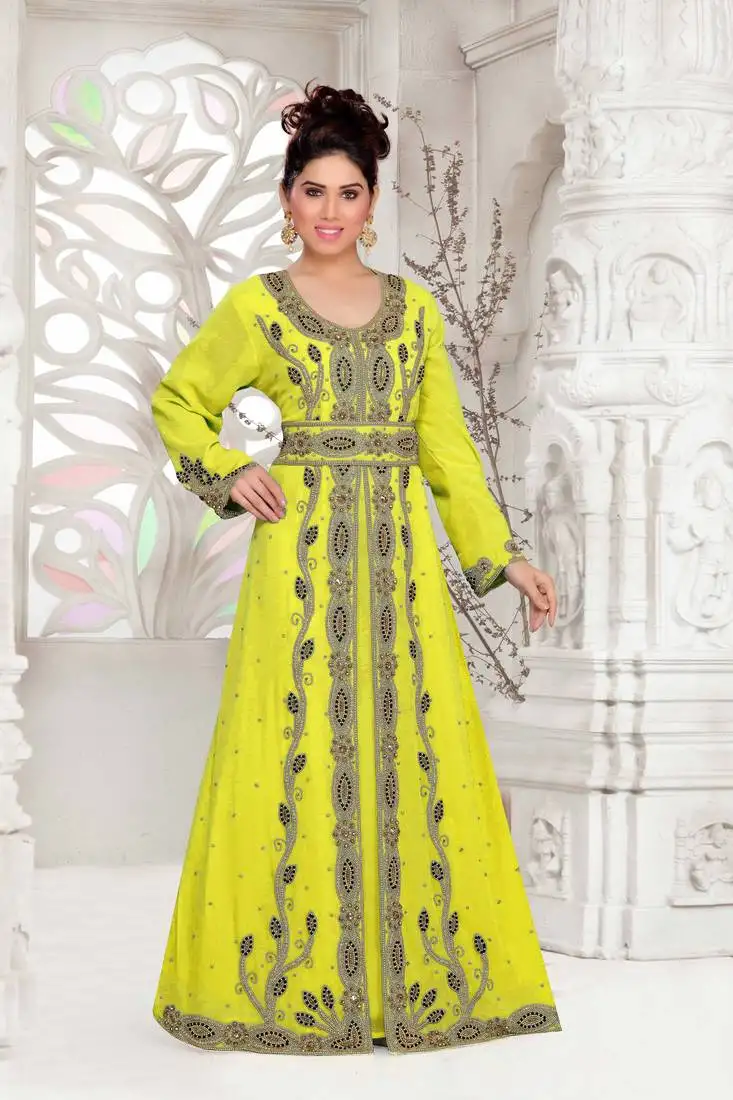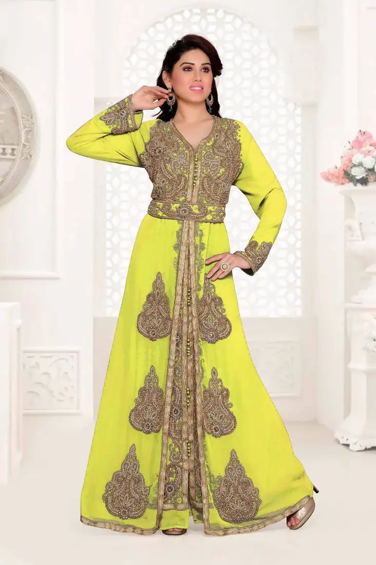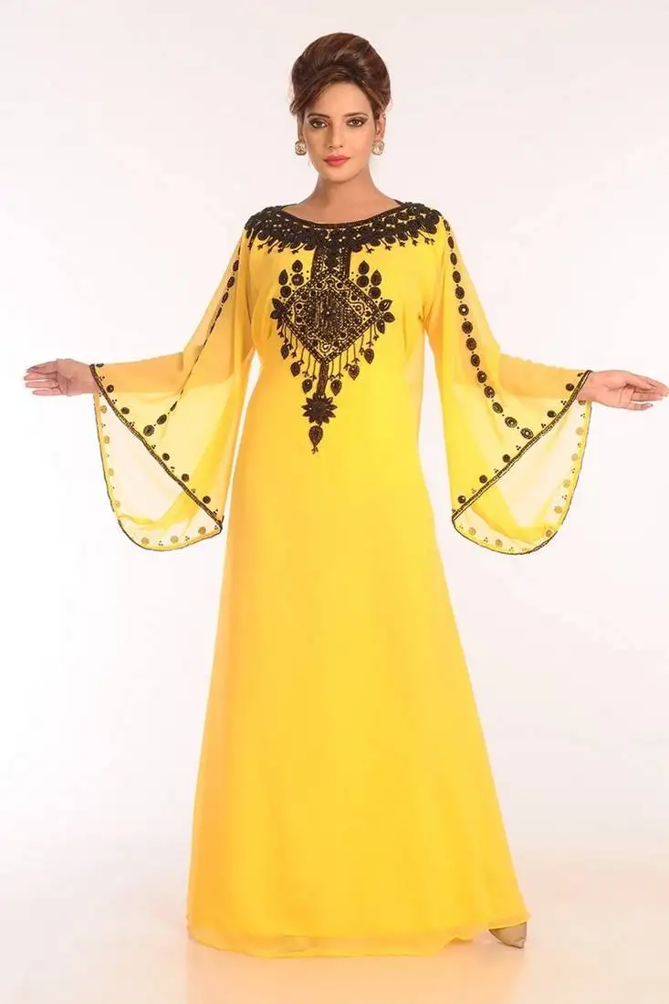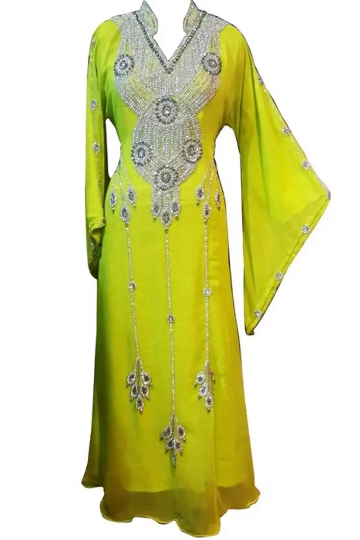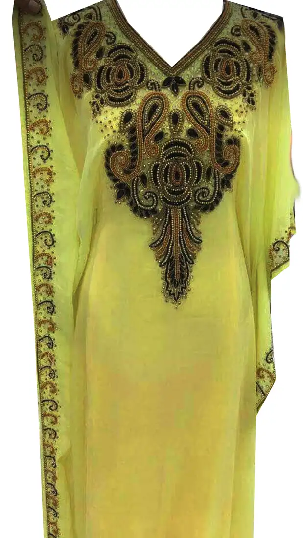 Sale!Yellow beads and stone work georgette hand stiched arab moroccan kaftan