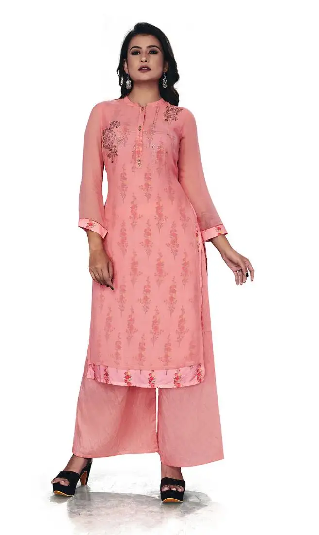 Women’s and girls peach georgette neck embroidered georgette kurta sets