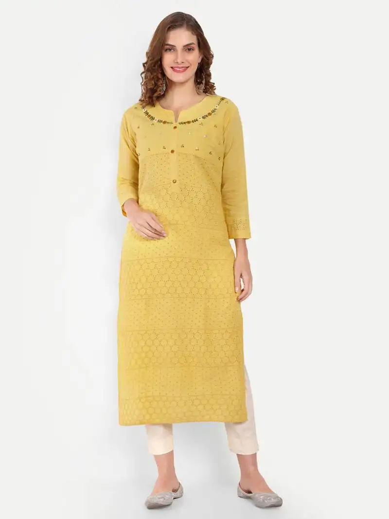 Yellow ethnic motifs pure cotton fancy kurta with palazzo set