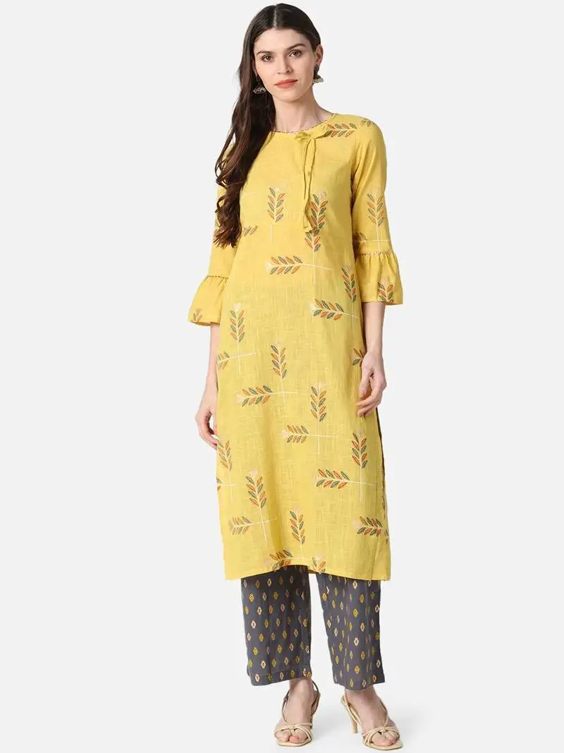 • Yellow ethnic motifs pure cotton fancy kurta with palazzo set