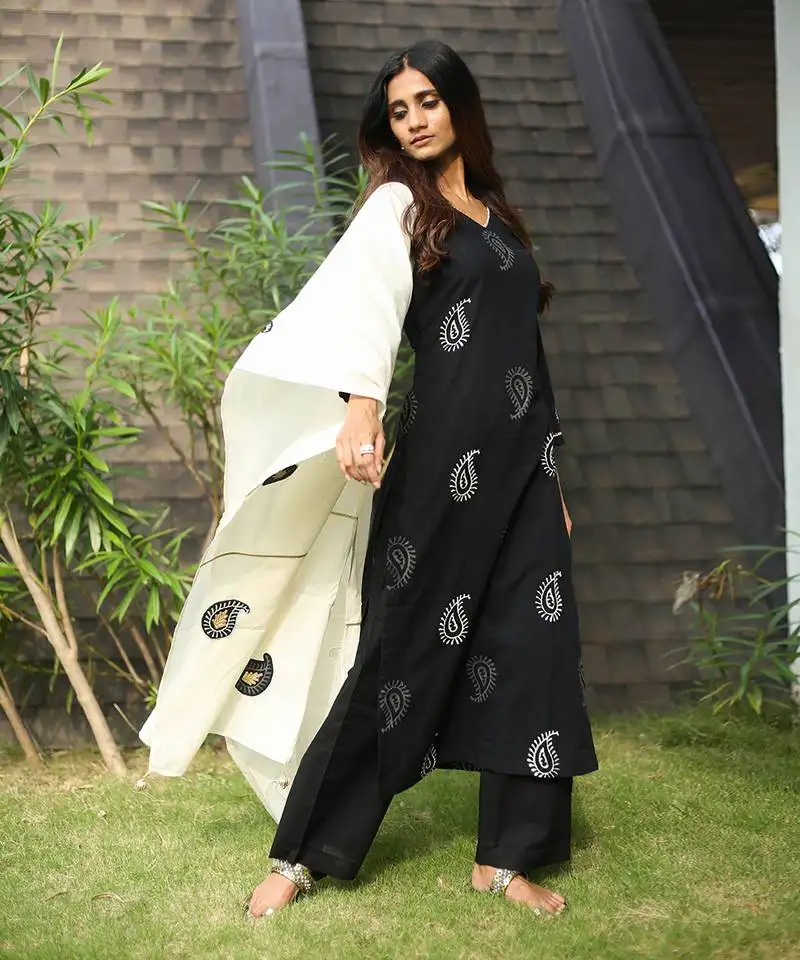 Sale!Black block print kora suit set