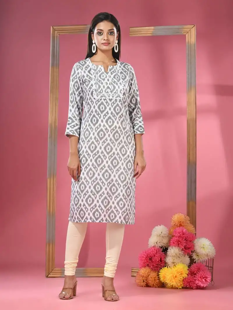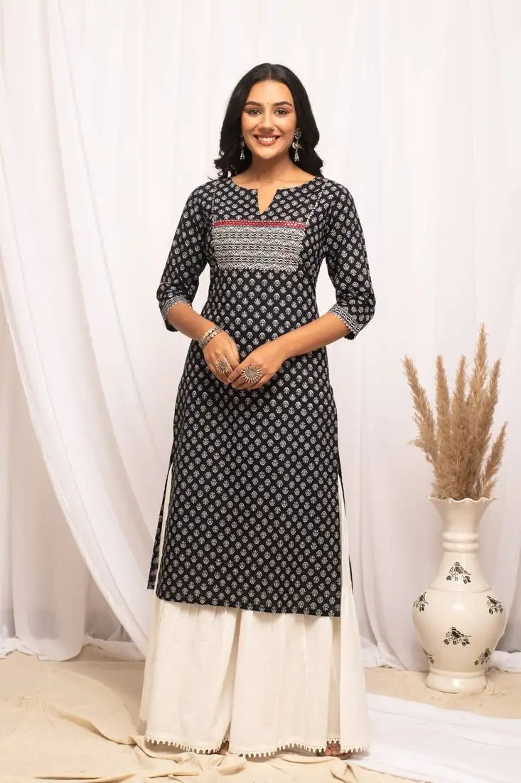 Sale!Black & white printed cotton kurta