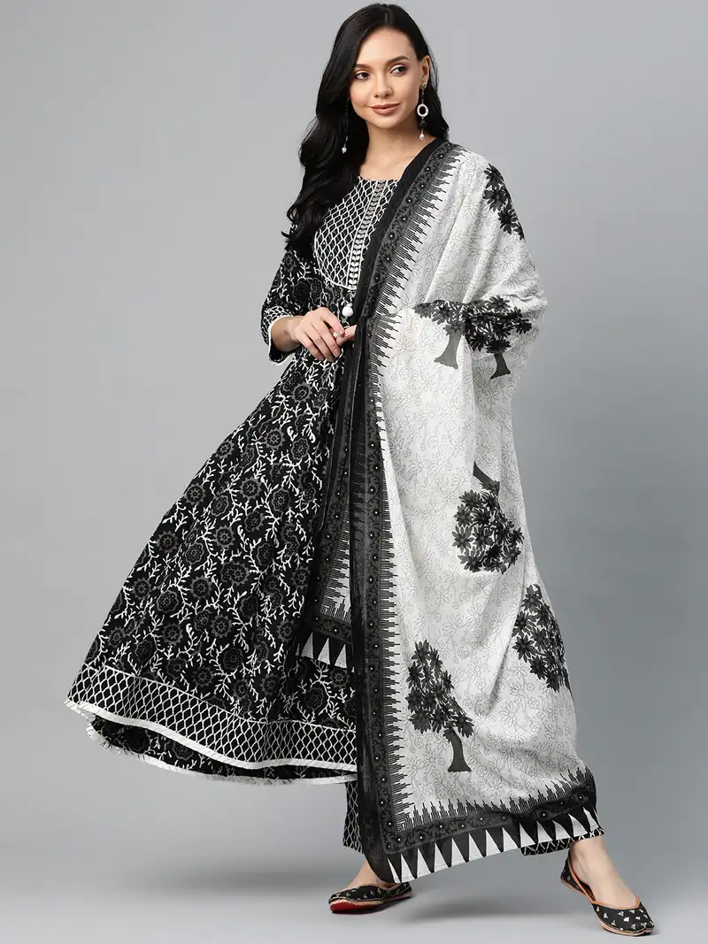 Sale!Black color printed rayon styles kurta trouser with dupatta