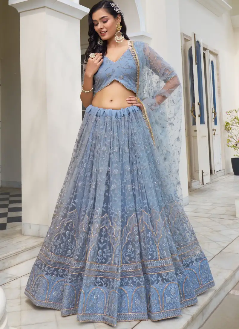 Sale!Amazing light blue sequins embroidery work lehenga choli with dupatta
