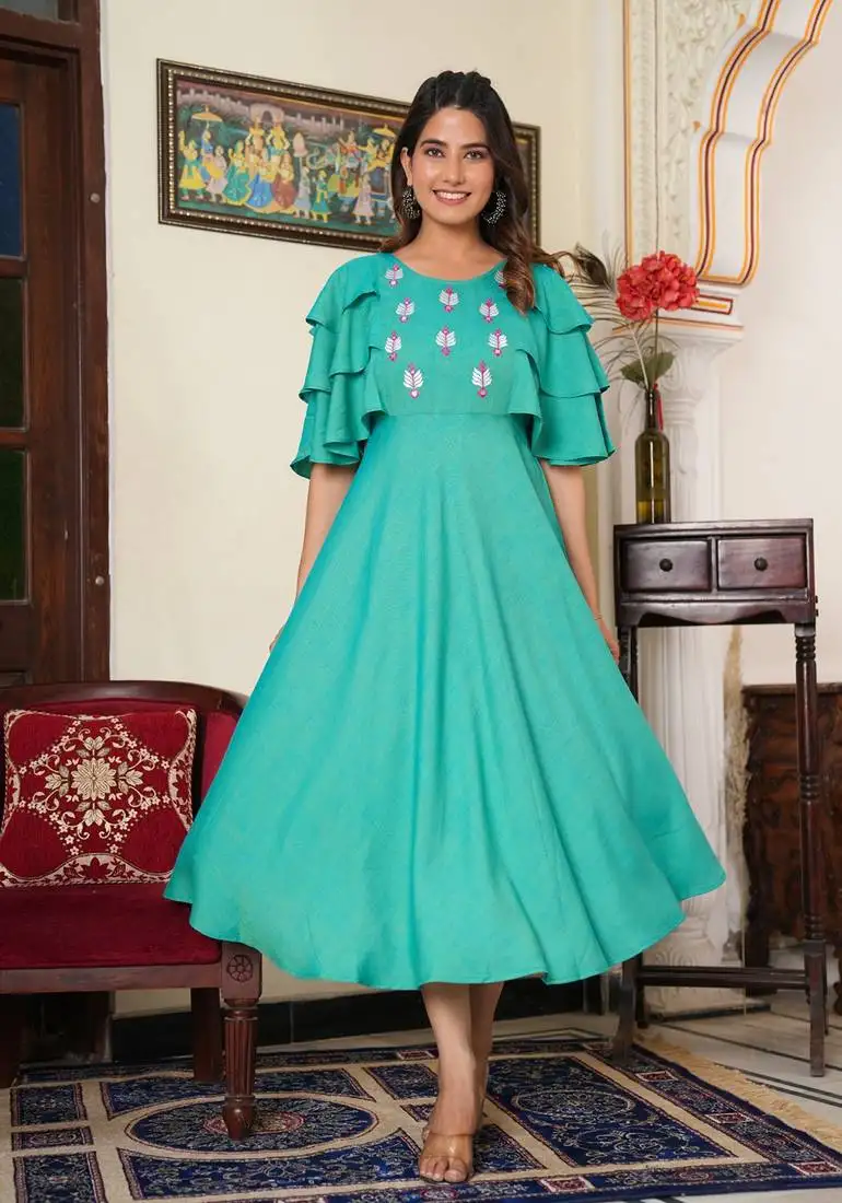 Sale!Women’s viscose embroidered anarkali ethnic dress (green)