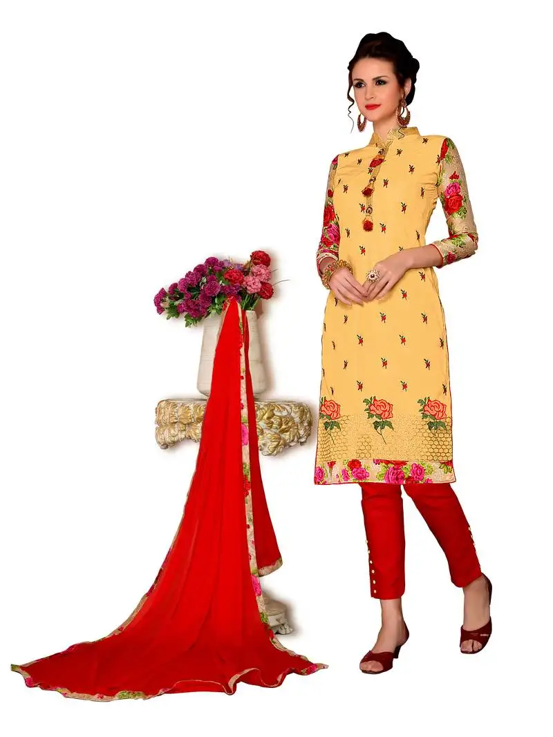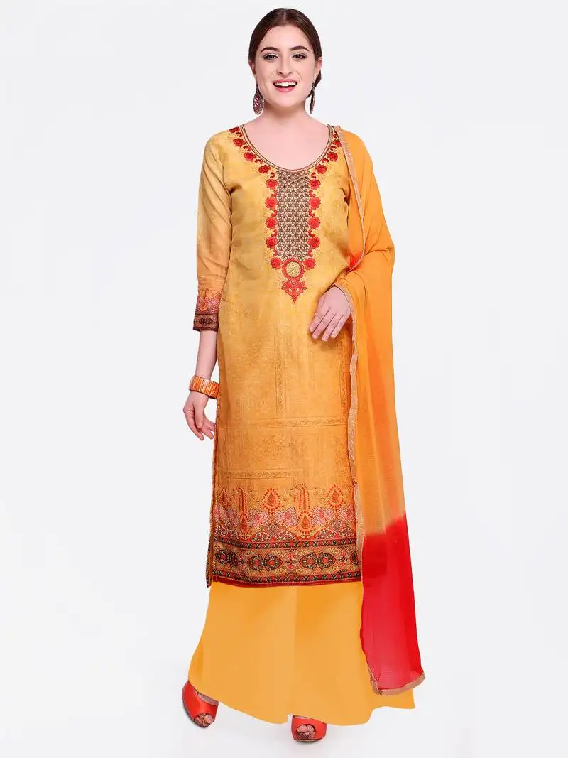 Sale!Yellow embroidered cotton salwar with dupatta unstitched