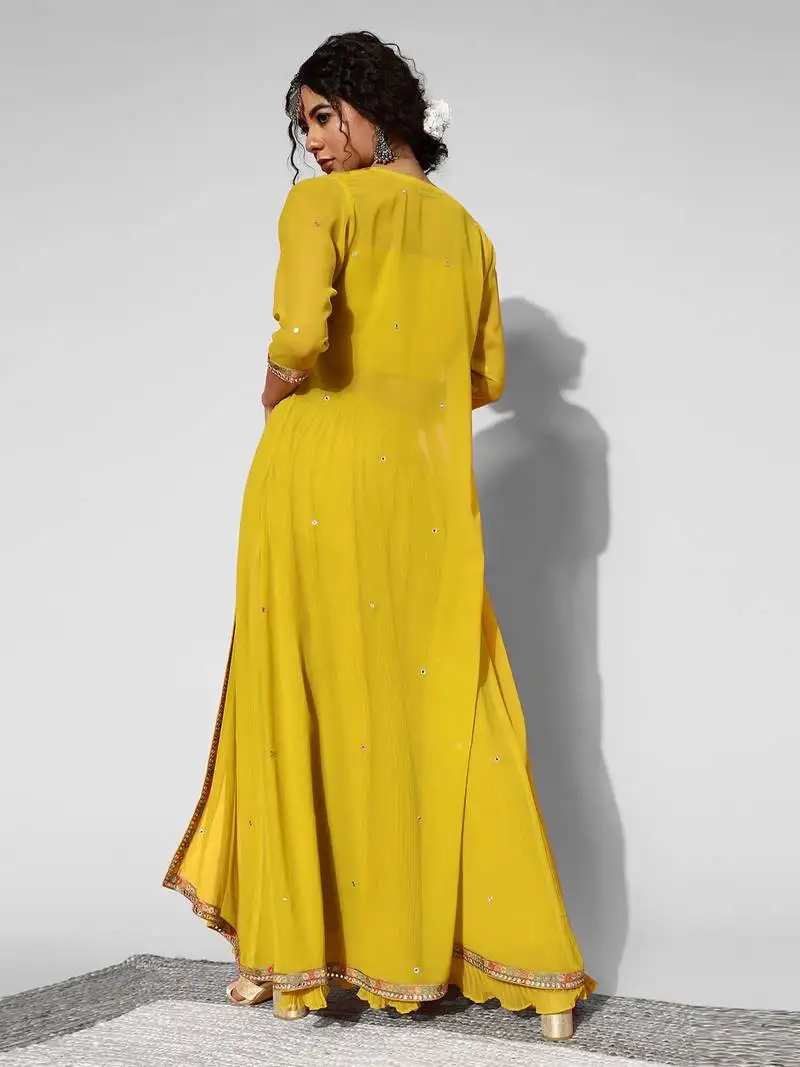 • Yellow georgette embroidery designer sharara suit semi stitched