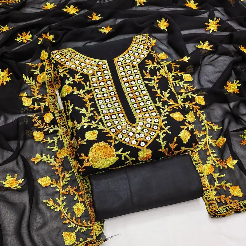 • Yellow georgette embroidered pakistani style unstitched dress material