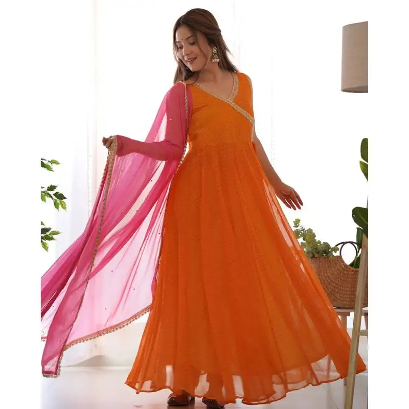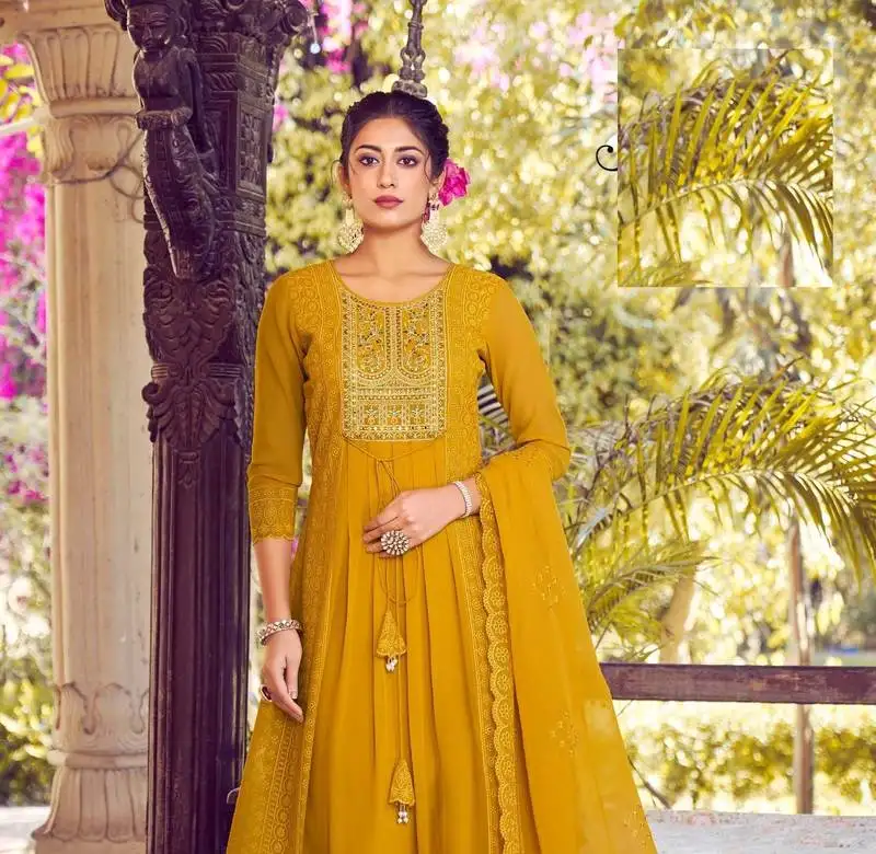 Sale!Yellow leheriya angrakha anarkali pant set with dupatta stitched