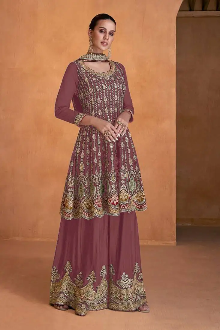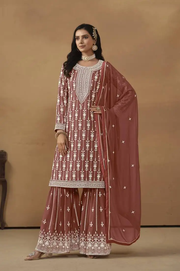 Sale!Beautiful and smart brown colour ethnic resham work sharara suit semi stitched