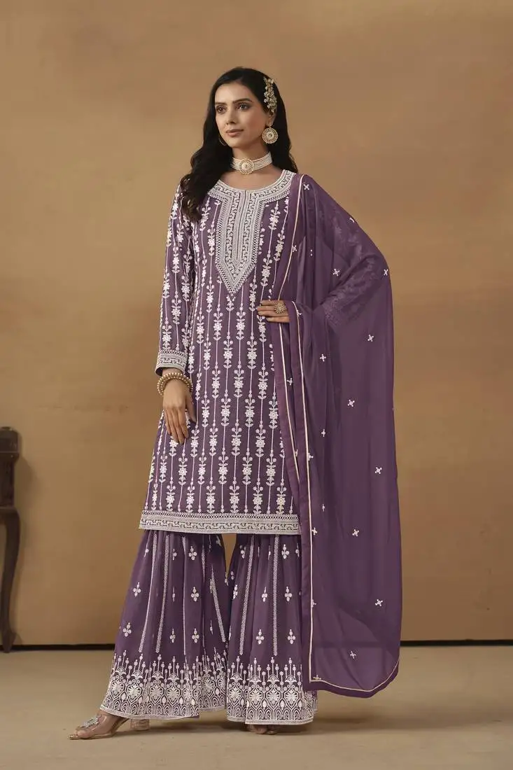 Sale!Beautiful and smart purple colour ethnic resham work sharara suit semi stitched