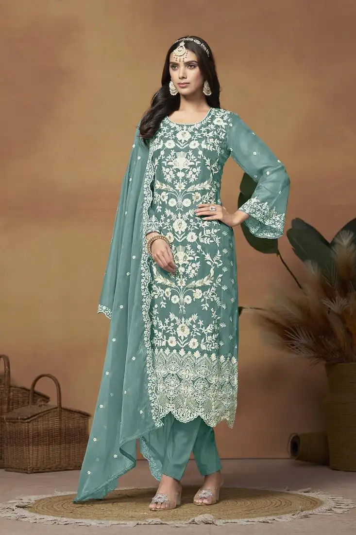 Sale!Beautiful blue colour pakistani style suit on organza fabric for trendy party looks semi stitched
