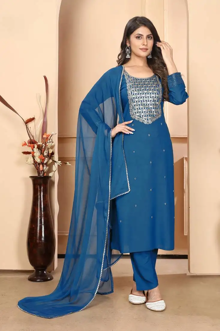 Sale!Beautiful blue colour rayon fabric ethnic embroidered readymade salwar suit stitched