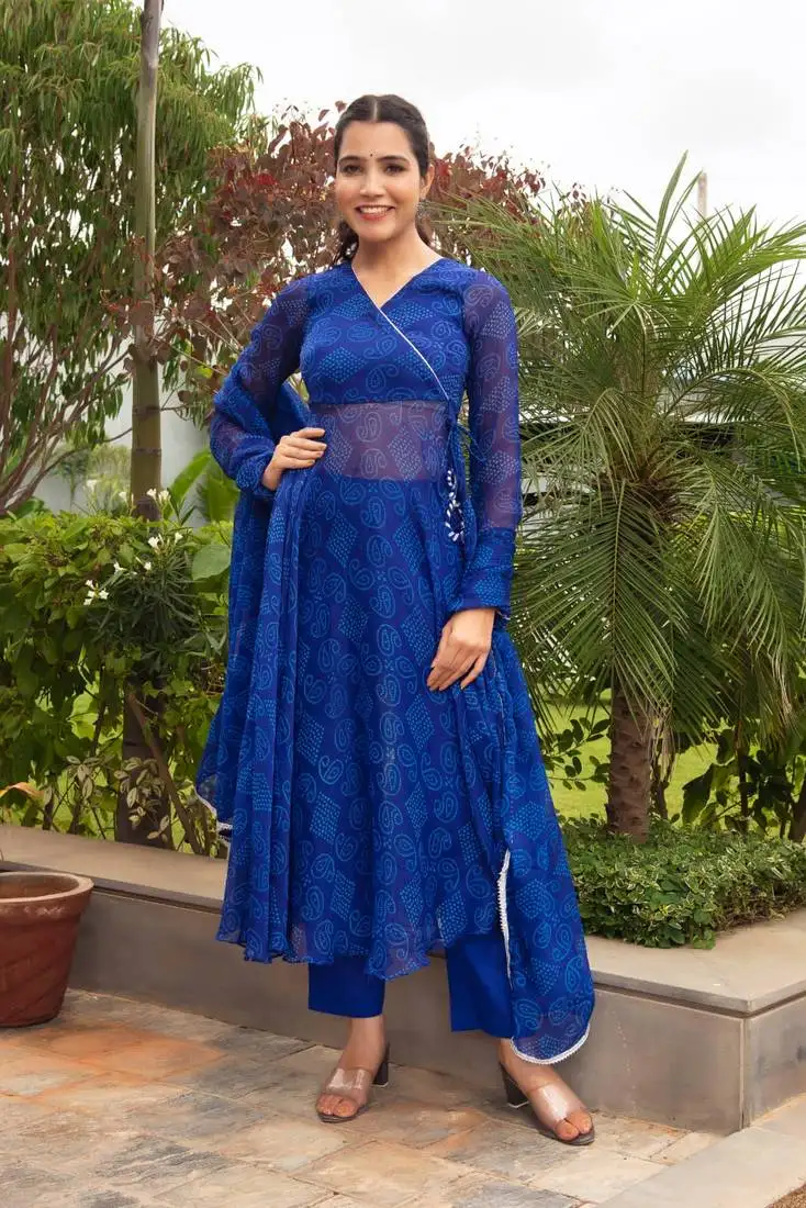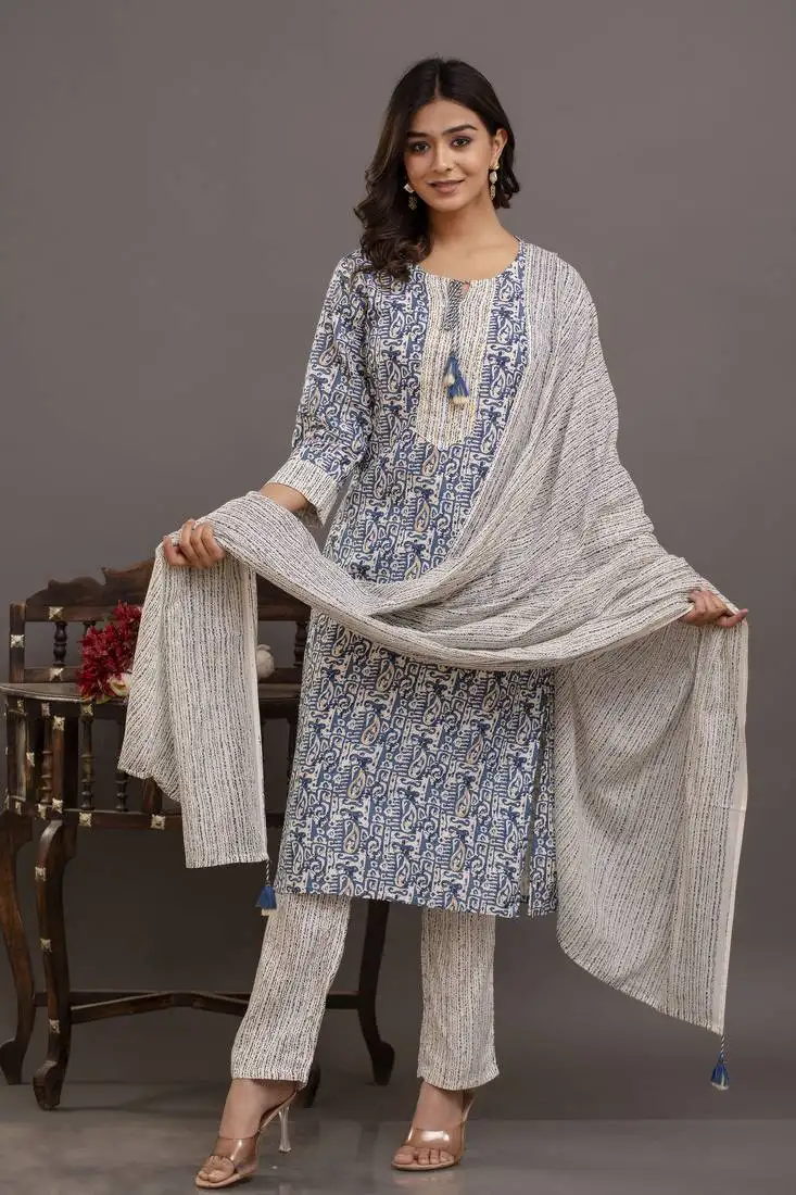 Sale!Beautiful blue colour traditional printed and embroidered ethnic suit stitched