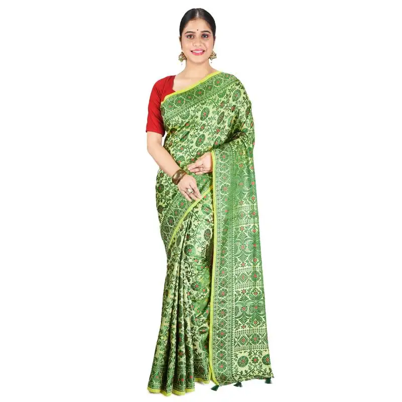 Aishani collection embroidery assam art silk handloom saree with bp (green)